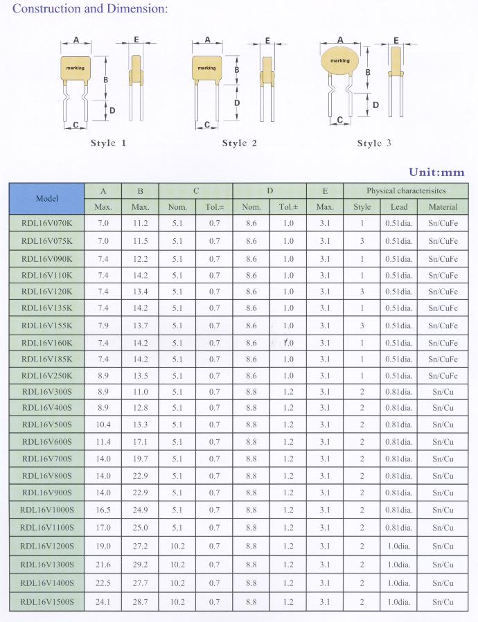 自恢复保险丝 RDL 16V系列